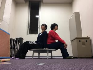 発声はあめんぼを仰向けに寝て。その後、半身を起こして外郎売を。