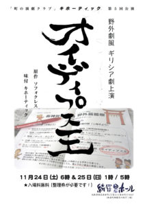 ギリシャ悲劇「オイディプス王」の告知を致します!